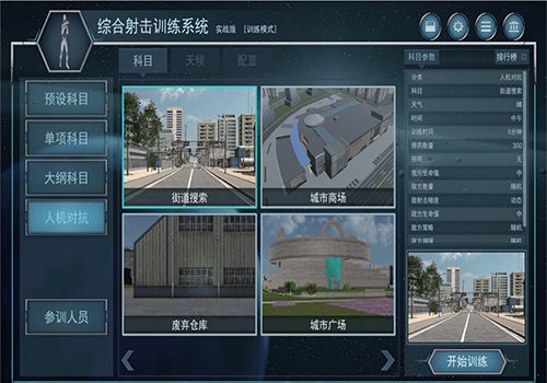 沖房系統(tǒng)主要滿足國內(nèi)反恐軍警實(shí)戰(zhàn)化訓(xùn)練需求,在戰(zhàn)術(shù)街區(qū) 快速布設(shè)光學(xué)電子靶,進(jìn)行激光對(duì)戰(zhàn)訓(xùn)練,設(shè)定不同訓(xùn)練場景,通過模擬訓(xùn)練方式完成單兵戰(zhàn)術(shù)對(duì)抗、小組戰(zhàn)術(shù)對(duì)抗、火力掩護(hù)、小組協(xié)同、戰(zhàn)術(shù)掩護(hù)推進(jìn)等訓(xùn)練科目